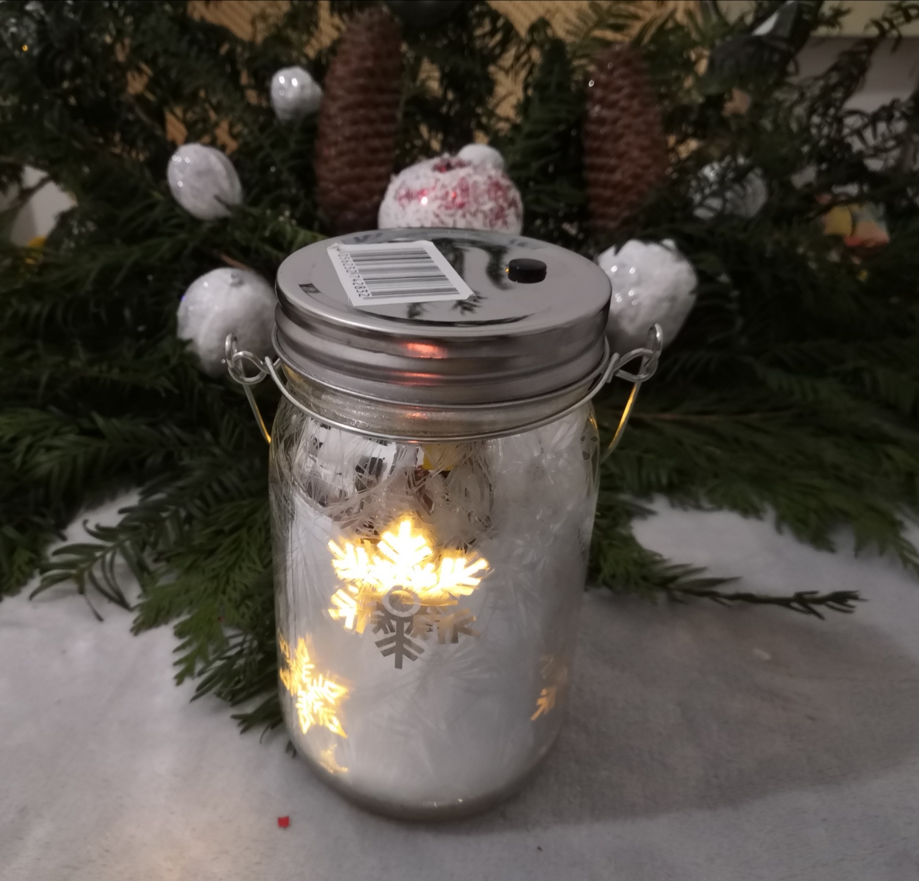 Je vous conseille d’acheter un récipient dédié. Ou si vous n’avez pas le choix de récupérer un de ceux que vous avez : un vase, une bonbonnière, un mug…Pour ma part, j’en ai acheté un chez Lidl avec des décorations de fête dessus. Je voulais quelque chose des féries de fin d’année, du coup, une couleur argentée, un peu de givre , une quelconque illumination et voilààààà…
